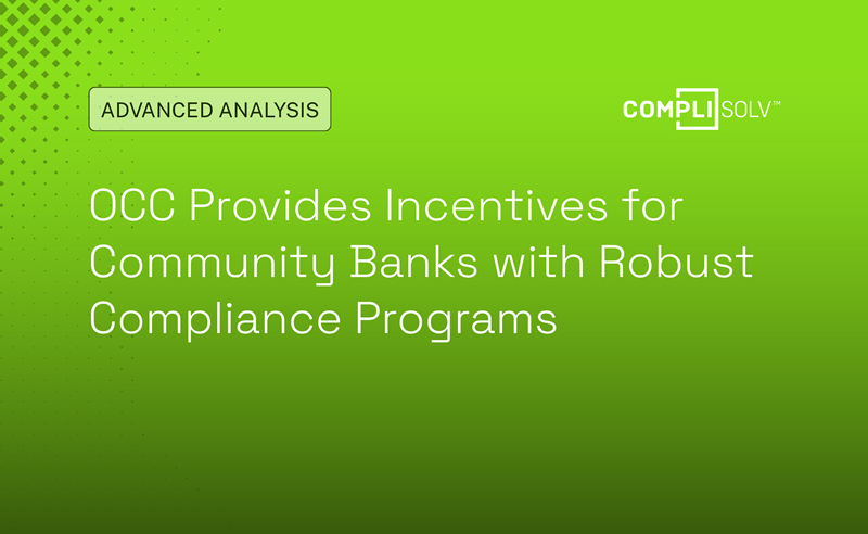 OCC Provides Incentives for Community Banks with Robust Compliance Programs