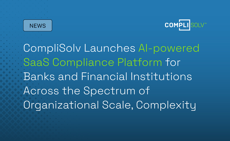 CompliSolv Launches AI-powered SaaS Compliance Platform for Banks and Financial Institutions Across the Spectrum of Organizational Scale, Complexity